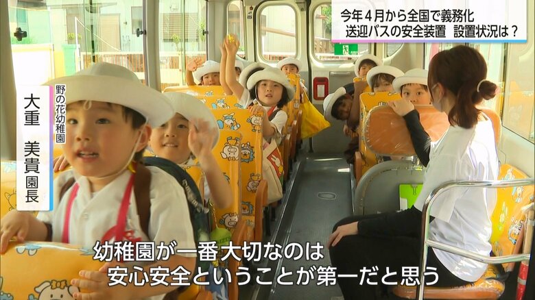 4月から全国で義務化「送迎バスの安全装置」 しかし整備が完… ギャラリー 1/10 記事に戻る 2/10 記事に戻る 3/10 記事に戻る 送迎バスに安全装置の設置している野の花幼稚園 4/10 記事に戻る 警報を止めるボタンを押す、野の花幼稚園の大重美貴園長 5/10 記事に戻る 6/10 記事に戻る 7/10 記事に戻る 8/10 記事に戻る 9/10 記事に戻る 10/10 記事に戻る