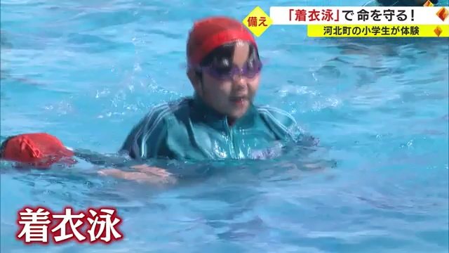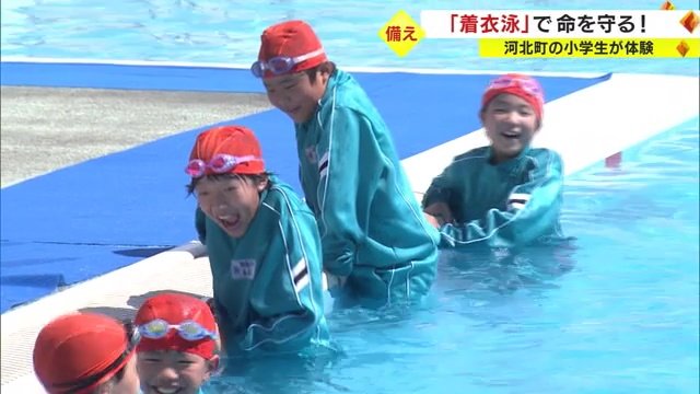 子どもの水難事故を防ぐ 河北町の小学生が服を着たままの「着…