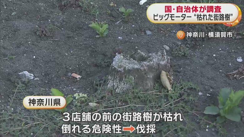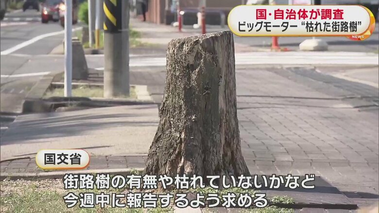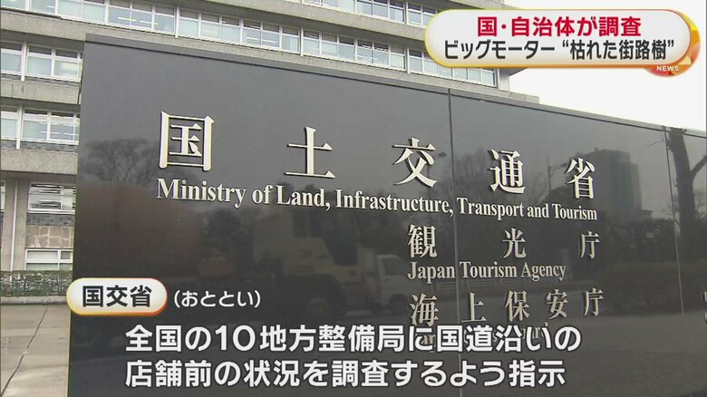 店舗前の“枯れた街路樹”国交省が調査を指示 全国10の地方整…