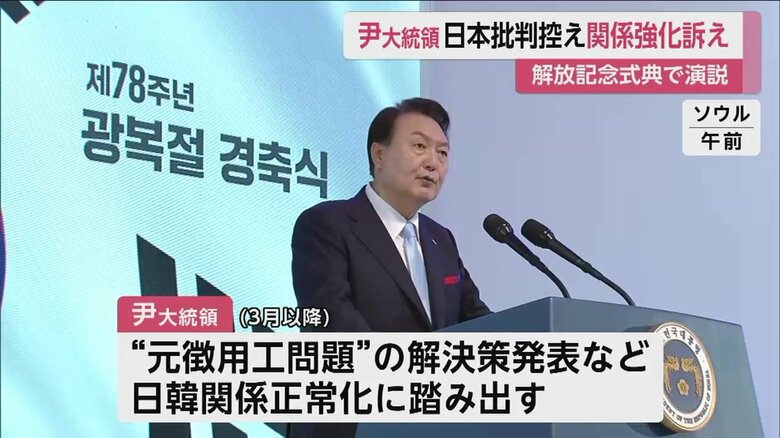 日本への批判控え安保・経済面で関係強化訴え 韓国・尹大統領… ギャラリー 1/4 記事に戻る 解放式典での演説で日本との関係強化を訴えた 2/4 記事に戻る 3/4 記事に戻る 北朝鮮を念頭に日米韓首脳会談に期待寄せる 4/4 記事に戻る