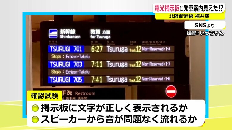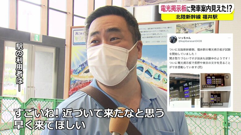 福井駅の電光掲示板に「行先・東京」の文字が!北陸新幹線の車… ギャラリー 1/8 記事に戻る 福井駅で撮影された電光掲示板(撮影:いっちゃん) 2/8 記事に戻る 残念ながら取材日の8月7日には点灯していなかった… 3/8 記事に戻る 4/8 記事に戻る 5/8 記事に戻る 6/8 記事に戻る 7/8 記事に戻る 8/8 記事に戻る