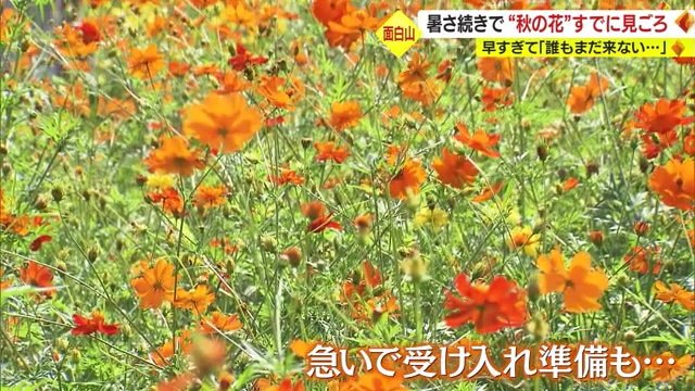 観光協会もびっくり 猛暑日続きで早咲きのコスモスがほぼ満開… ギャラリー 1/10 記事に戻る すでに満開の「キバナコスモス」 2/10 記事に戻る 山寺観光協会・遠藤定治副会長 3/10 記事に戻る 4/10 記事に戻る 5/10 記事に戻る フランスからの1組だけ 6/10 記事に戻る 日本の花を褒めるフランスからの観光客 7/10 記事に戻る コスモスのじゅうたん 8/10 記事に戻る 早くコスモスを見に来てもらいたい遠藤定治副会長 9/10 記事に戻る 面白山高原コスモスベルグのコスモス 10/10 記事に戻る