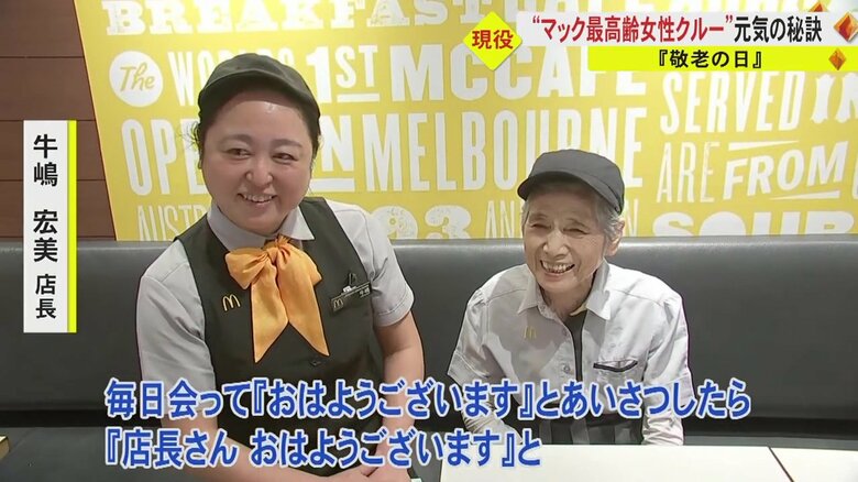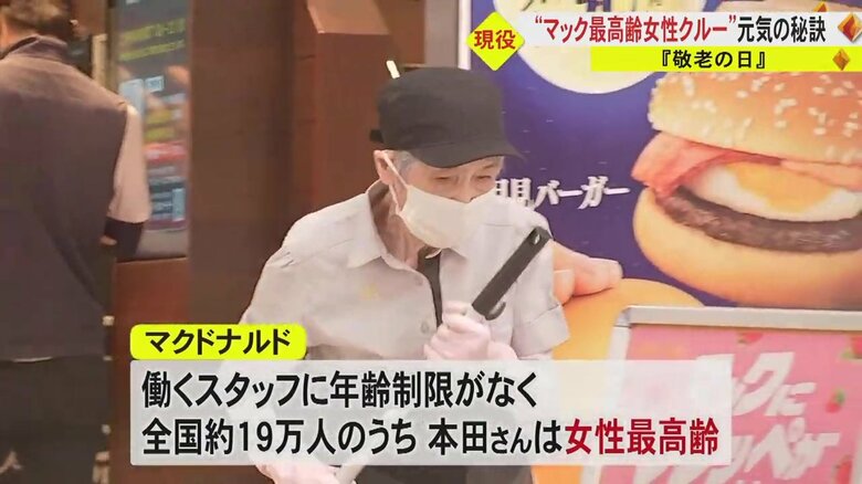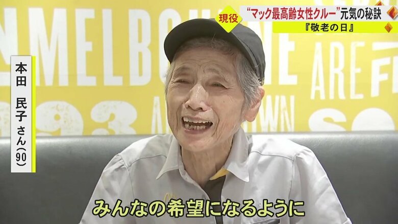 マクドナルドで働く90歳の“女性最高齢”クルー 働きがいは「… ギャラリー 1/8 記事に戻る マクドナルド女性最高齢クルーの本田民子さん 2/8 記事に戻る 3/8 記事に戻る 4/8 記事に戻る 5/8 記事に戻る 6/8 記事に戻る 本田さんが一番好きなメニューは… 7/8 記事に戻る 8/8 記事に戻る