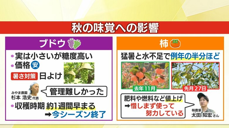 暑すぎた夏…秋の味覚にも影響大 ブドウは房が小さく柿は実り…