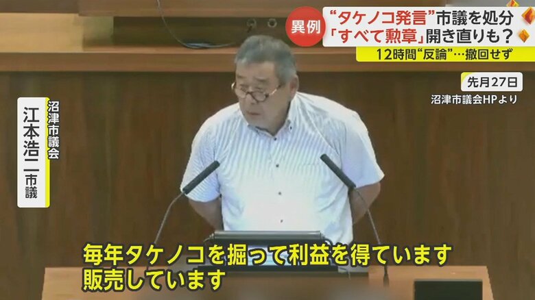 “タケノコ発言”の市議が開き直り? 懲罰は「すべて勲章」 … ギャラリー 問題視された9月27日の発言 11/14 記事に戻る 12/14 記事に戻る 「そして、私の人格を尊厳をも自らおとしめることになります」と謝罪を拒否 13/14 記事に戻る 山下市議は会見で「提訴されれば、もちろん応訴はいたしますが、その前に十分な話し合いをしていただきたい」と述べた 14/14 記事に戻る 1 2