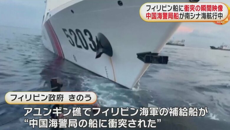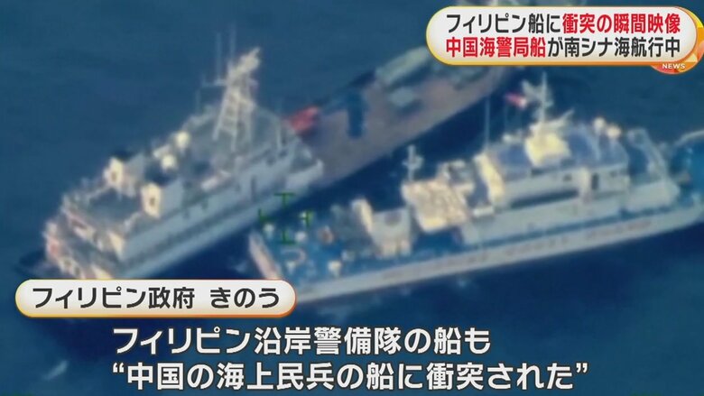 衝突の瞬間を公開 中国海警局の船がフィリピン船に さらに別…