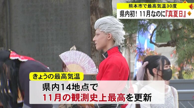 熊本県内で観測史上初11月に「真夏日」気温30度まで上がり…上…