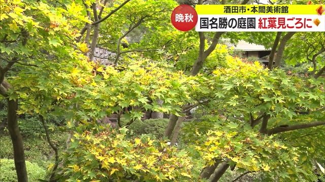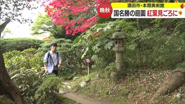 国の名勝指定の庭園・本間美術館「鶴舞園」紅葉見ごろに 風情…