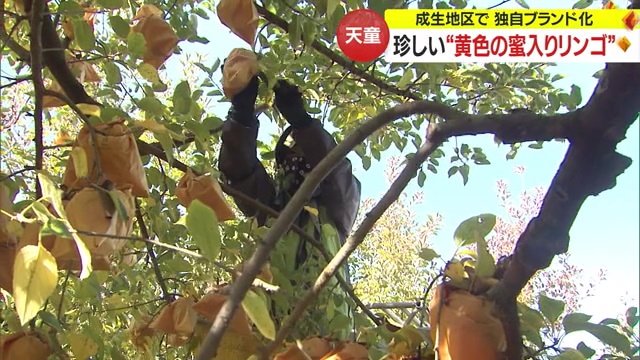 「黄色もすごくおいしいよ」 珍しい黄色の蜜入りリンゴ“プリ…