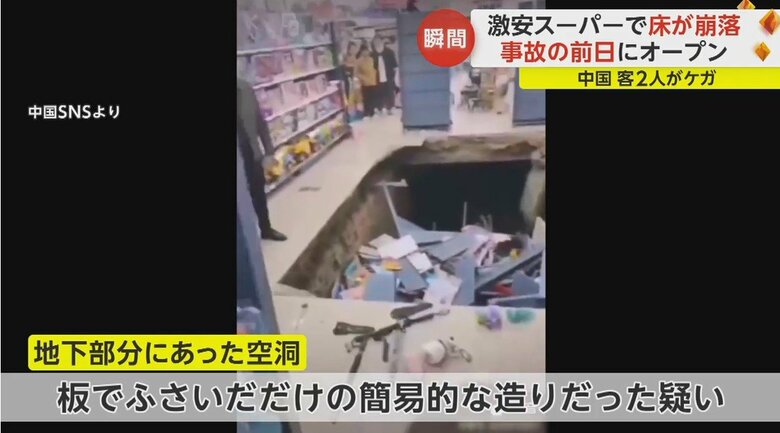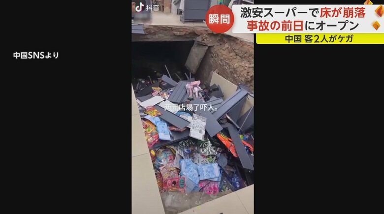 【瞬間映像】中国激安スーパーで床が突然崩落 前日にオープン…