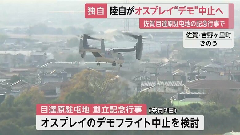 陸上自衛隊は佐賀・目達原駐屯地でのオスプレイのデモフライト中止を検討
