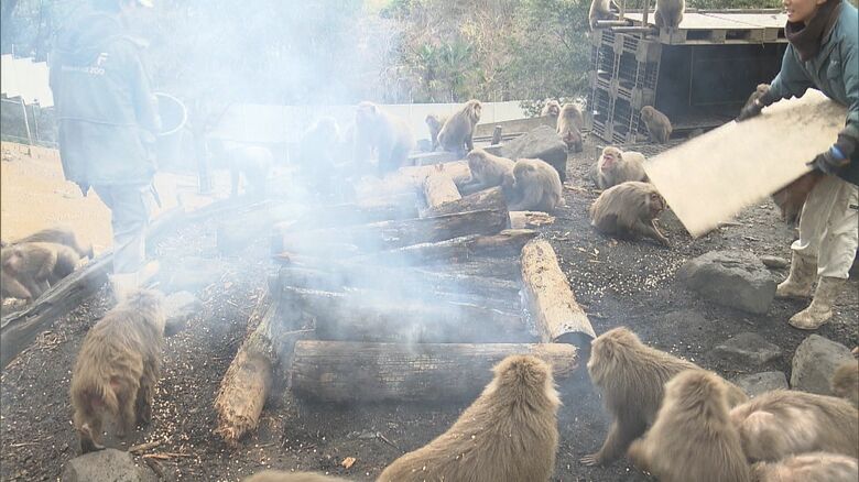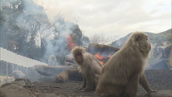 職員「多分日本でここだけ」焚き火で暖を取るサルたち 60年以…