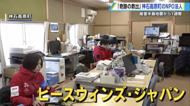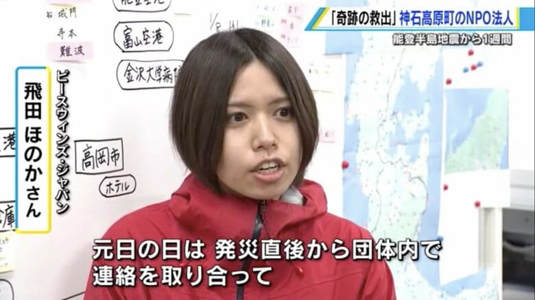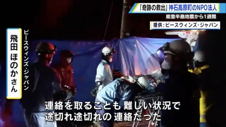 「頑張れよ!おかあちゃん」 124時間ぶり奇跡の救出 能登半島… ギャラリー 1/8 記事に戻る 2/8 記事に戻る 広島・神石高原町にあるNPO法人の本部 3/8 記事に戻る 4/8 記事に戻る 5/8 記事に戻る 6日、石川県珠洲市で倒壊した住宅に閉じ込められた女性の救助活動 6/8 記事に戻る 稲葉基高 医師 7/8 記事に戻る 8/8 記事に戻る