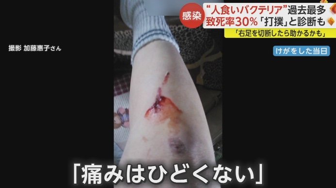 “人食いバクテリア”感染者が右足切断の経緯を激白…当初は「… ギャラリー 1/14 記事に戻る 2/14 記事に戻る 3/14 記事に戻る 4/14 記事に戻る 5/14 記事に戻る 6/14 記事に戻る 7/14 記事に戻る 8/14 記事に戻る 9/14 記事に戻る 10/14 記事に戻る 11枚目以降の画像を見る 1 2