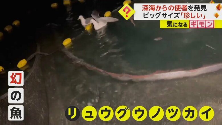深海からの使者“リュウグウノツカイ” 全長約5mのビッグサイ… ギャラリー 1/11 記事に戻る 2/11 記事に戻る 3/11 記事に戻る 福井・小浜市の海で発見された幻の魚「リュウグウノツカイ」 4/11 記事に戻る 全長約5メートルほどあるリュウグウノツカイ 5/11 記事に戻る 本来は水深200メートルから1000メートルの深海に生息するリュウグウノツカイ 6/11 記事に戻る 定置網にかかったリュウグウノツカイ 7/11 記事に戻る 定置網にかかったリュウグウノツカイが引き上げられる様子 8/11 記事に戻る 船の光に寄ってきたというリュウグウノツカイ 9/11 記事に戻る リュウグウノツカイを発見した漁師の浦谷俊晴さん 10/11 記事に戻る 11枚目以降の画像を見る 1 2