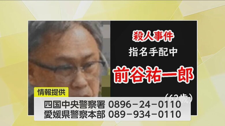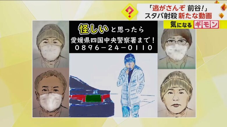 「逃がさんぞ前谷!」スタバ射殺事件で愛媛県警が動画公開 マ… ギャラリー 1/12 記事に戻る 2/12 記事に戻る 3/12 記事に戻る 4/12 記事に戻る 全国指名手配中の前谷祐一郎容疑者(62) 5/12 記事に戻る 1月に男性射殺事件が起きた愛媛県のスターバックス 6/12 記事に戻る 全国指名手配中の前谷祐一郎容疑者(62) 7/12 記事に戻る 前谷容疑者は、身長163cmほどで、左手の薬指と小指が欠けている 8/12 記事に戻る 公開された前谷容疑者のさまざまなパターンの似顔絵 9/12 記事に戻る 「逃がさんぞ前谷!」とメッセージが流れる動画 10/12 記事に戻る 11枚目以降の画像を見る 1 2