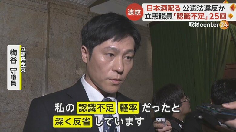 日本酒を選挙区内で渡した?立憲・梅谷議員「認識不足」×25回… ギャラリー 1/8 記事に戻る 2/8 記事に戻る 3/8 記事に戻る 選挙区にあたる新潟県内での会合で、袋に入ったものを関係者に手渡す梅谷議員 4/8 記事に戻る 5/8 記事に戻る 6/8 記事に戻る 質問に対し「軽率」「認識不足」を繰り返す梅谷議員に、顔をゆがませる記者 7/8 記事に戻る 8/8 記事に戻る