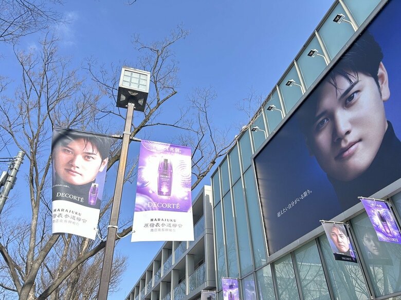 大谷翔平選手が表参道をジャック!並木道の街路灯に大谷選手の…