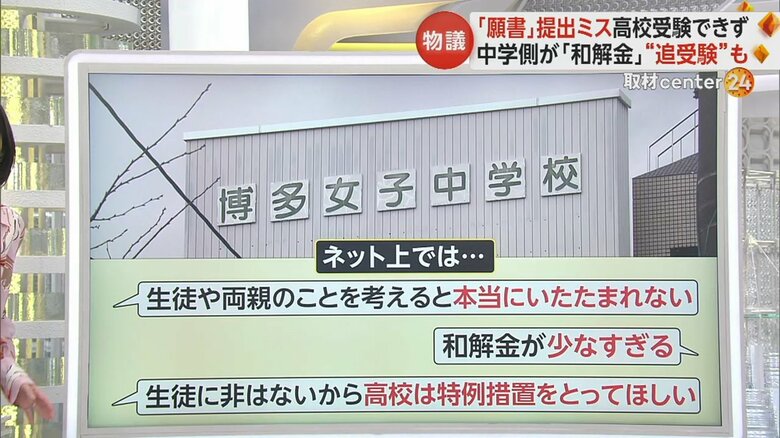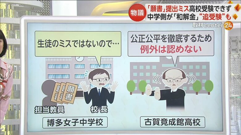 「願書」提出ミスで中学生3人が高校受験できず 高校側は3月中… ギャラリー 1/11 記事に戻る 2/11 記事に戻る 3/11 記事に戻る 4/11 記事に戻る 5/11 記事に戻る 6/11 記事に戻る 7/11 記事に戻る 博多女子中学校、教師らの勘違いで願書の提出が間に合わず、生徒3人が古賀竟成館高校の受験できず 8/11 記事に戻る 博多女子中学校、教師らの勘違いで願書の提出が間に合わず、生徒3人が古賀竟成館高校の受験できず 9/11 記事に戻る 被害を受けた3人の生徒の受験状況は公表控える 10/11 記事に戻る 11枚目以降の画像を見る 1 2