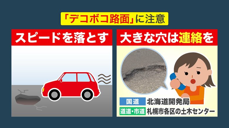北海道にもまもなく春到来 雪解け進み“穴だらけ”の道路が出…