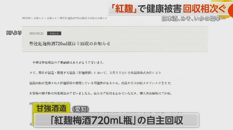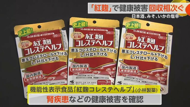 「紅麹」で健康被害 日本酒、イカの塩辛、味噌も…回収相次ぐ… ギャラリー 1/13 記事に戻る 腎疾患などの健康被害を確認 2/13 記事に戻る 機能性表示食品「紅麹コレステヘルプ」 3/13 記事に戻る 4/13 記事に戻る 5/13 記事に戻る 6/13 記事に戻る 小林製薬の紅麹原料を使った商品を回収 7/13 記事に戻る 問題を把握した時期について「おそらく2月6日に聞いている」「何らかの形で回収になるだろうという覚悟を持ちました」と話した 8/13 記事に戻る 9/13 記事に戻る 10/13 記事に戻る 11枚目以降の画像を見る 1 2