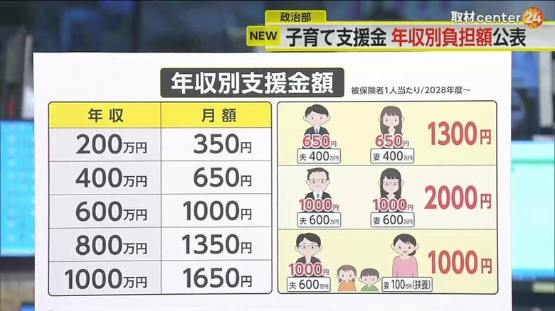 “月1650円”の負担も…子育て支援金負担額の試算公表 当初発… ギャラリー 1/11 記事に戻る 2/11 記事に戻る 3/11 記事に戻る 4/11 記事に戻る 5/11 記事に戻る 6/11 記事に戻る 解説をするフジテレビ政治部・高田圭太デスク 7/11 記事に戻る 8/11 記事に戻る 子育て支援金の負担額について「月500円弱」と発言していた岸田首相 9/11 記事に戻る 政府が公表した被用者保険の年収別負担額の試算 10/11 記事に戻る 11枚目以降の画像を見る 1 2