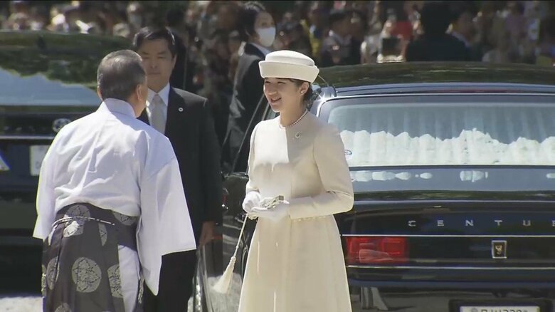 愛子さま明治神宮を初参拝 オフホワイトのロングドレス姿で …
