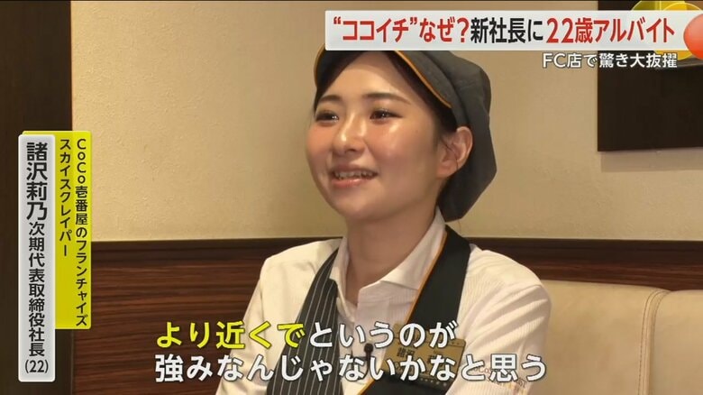 “ココイチ新社長”は22歳の女性アルバイト 20歳の時に打診…… ギャラリー 1/13 記事に戻る 2/13 記事に戻る 3/13 記事に戻る 4/13 記事に戻る 5/13 記事に戻る 6/13 記事に戻る 7/13 記事に戻る ココイチを展開するフランチャイズ「スカイスクレイパー」の新社長に抜擢された22歳の諸沢莉乃さん 8/13 記事に戻る 「カレーハウスCoCo壱番屋」でアルバイトとして働く22歳の諸沢莉乃さん 9/13 記事に戻る 5月1日から代表取締役社長になる諸沢莉乃さん 10/13 記事に戻る 11枚目以降の画像を見る 1 2