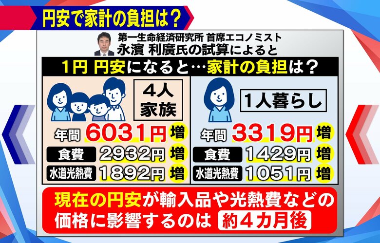 1円上がるごとに4人家族で6000円負担増?進む“超円安”…一時… ギャラリー 1/8 記事に戻る 2/8 記事に戻る 3/8 記事に戻る 4/8 記事に戻る 5/8 記事に戻る 6/8 記事に戻る 7/8 記事に戻る 8/8 記事に戻る
