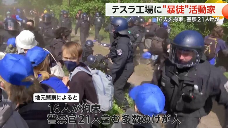 テスラ工場に“暴徒化”環境活動家 16人拘束、警察官21人ケガ…