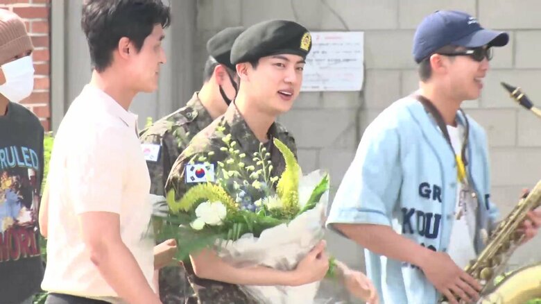 BTSの中で最初に入隊したJINさんが1年半の兵役終える メンバ…