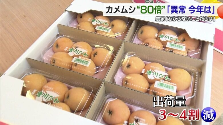 “約80倍”に急増「カメムシ」大量発生で対策呼びかけ 市街地… ギャラリー 1/10 記事に戻る 2/10 記事に戻る 3/10 記事に戻る カメムシに汁を吸われ枯れてしまった「紅まどんな」の芽 4/10 記事に戻る 5/10 記事に戻る 6/10 記事に戻る 7/10 記事に戻る 8/10 記事に戻る 9/10 記事に戻る 10/10 記事に戻る