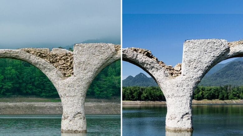 “幻の橋”と呼ばれるタウシュベツ川橋梁…2024年6月一部崩落 …