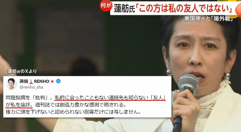 「この方は友人ではない」蓮舫氏が東国原氏“友人発言”否定 …
