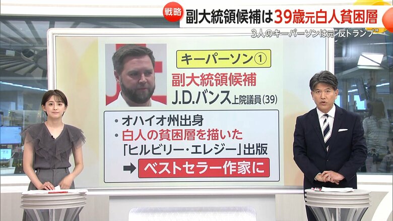 【解説】暗殺未遂から2日…耳にガーゼのトランプ氏が共和党大… ギャラリー 1/11 記事に戻る 共和党大会に姿を見せたトランプ氏 2/11 記事に戻る キーマンとして挙げられる元・反トランプの3人 3/11 記事に戻る 4/11 記事に戻る 副大統領候補に選出されたバンス氏 5/11 記事に戻る 6/11 記事に戻る トランプ氏の支持者の様子 7/11 記事に戻る 8/11 記事に戻る 9/11 記事に戻る 39歳の若さで副大統領候補に選出されたベストセラー作家のバンス上院議員 10/11 記事に戻る 11枚目以降の画像を見る 1 2