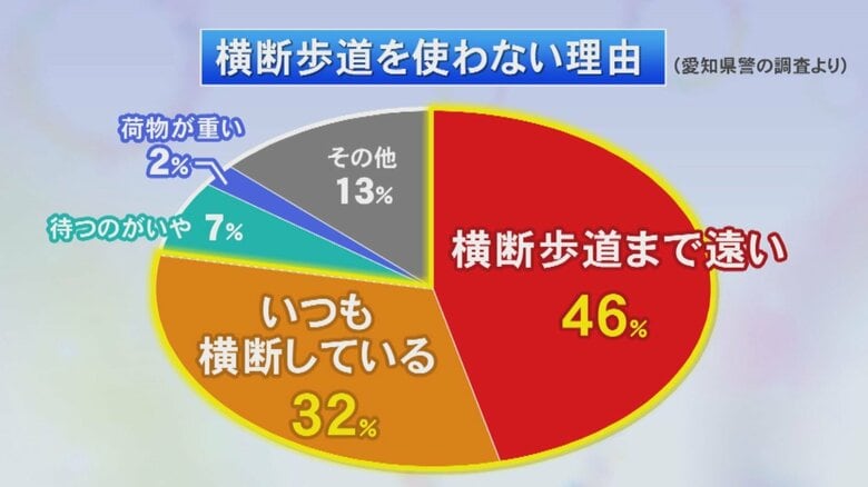 横断歩道でなく中央線等越え渡った高齢者 理由の多くが「遠い…