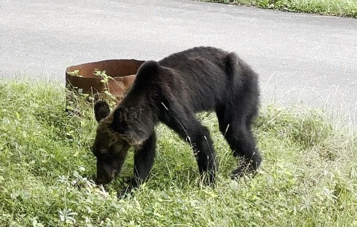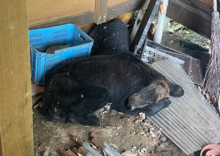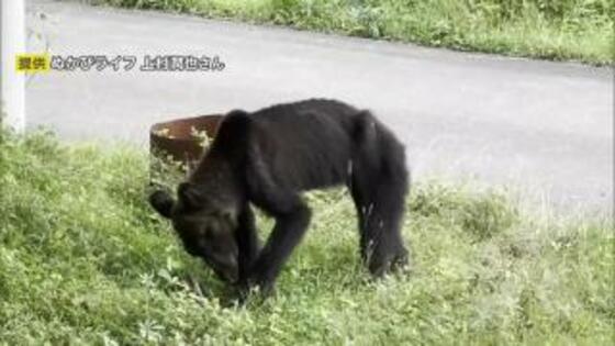 住宅の車庫に力なく寝そべるクマ 6時間以上居座る…住宅方向に…