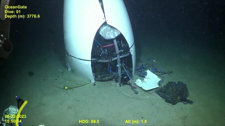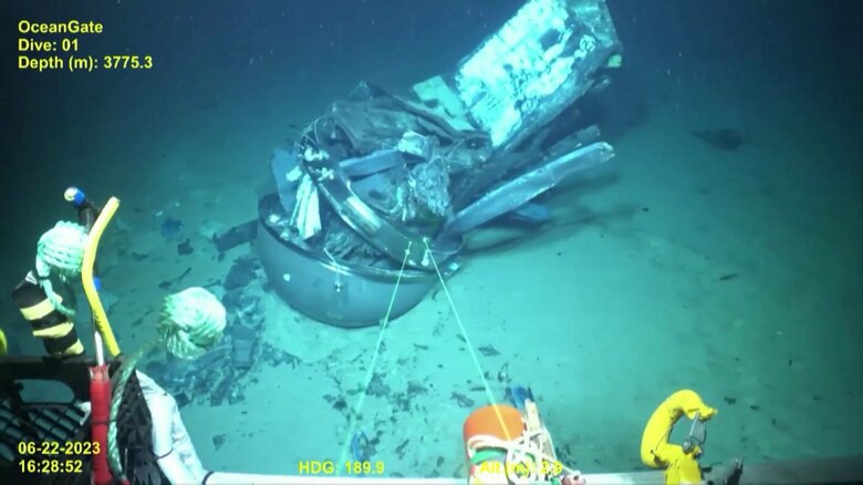 海底に沈む潜水艇「タイタン」映像公開…タイタニック号見学ツ…