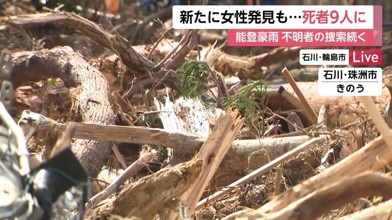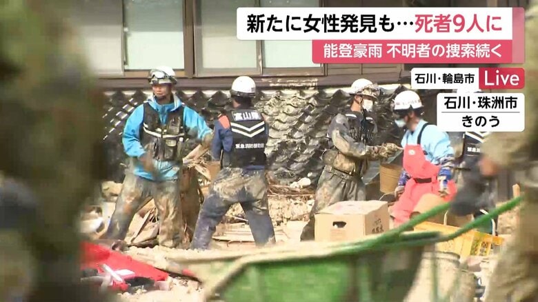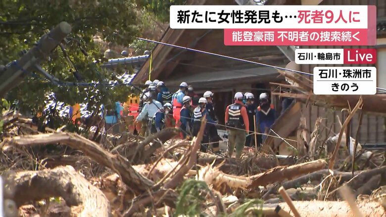 能登豪雨 珠洲市で1人、輪島市で女性1人の死亡確認 死者9人…