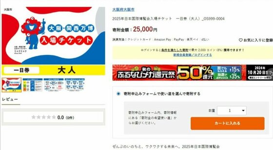 目標の「4割」にとどまる『万博チケット』前売り 「ふるさと… ギャラリー 1/3 記事に戻る 【スクエア記念チケット】大人用「通期パス」寄付額10万9000円 2/3 記事に戻る 大阪市 横山英幸市長 3/3 記事に戻る