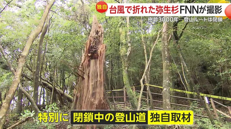 【独自取材】「ツアー客は減る」“樹齢3000年”弥生杉が倒壊 … ギャラリー 1/29 記事に戻る 2/29 記事に戻る 根元から折れてしまった屋久杉 3/29 記事に戻る 4/29 記事に戻る 5/29 記事に戻る 6/29 記事に戻る 「立入禁止」の規制線が何重にも張られた登山道 7/29 記事に戻る 8/29 記事に戻る 遊歩道を塞ぐように倒木がいくつも見られる 9/29 記事に戻る 奥に弥生杉と書かれた看板があるが、弥生杉は見る影もない。 10/29 記事に戻る 11枚目以降の画像を見る 1 2 3
