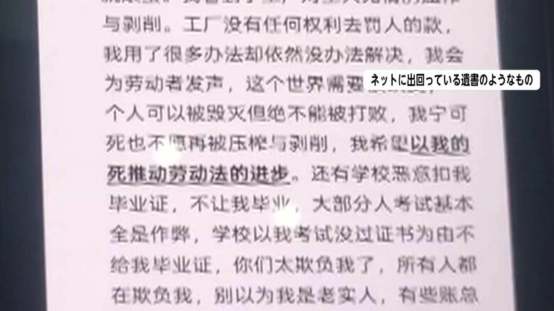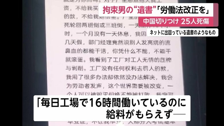 「毎日16時間以上働いているのに給料もらえず」中国・江蘇省25… ギャラリー 1/13 記事に戻る ネットに出回っている男の遺書とされるもの 2/13 記事に戻る 国営メディアは詳細伝えず情報統制か 3/13 記事に戻る 4/13 記事に戻る 5/13 記事に戻る 6/13 記事に戻る 7/13 記事に戻る 8/13 記事に戻る 9/13 記事に戻る 10/13 記事に戻る 11枚目以降の画像を見る 1 2