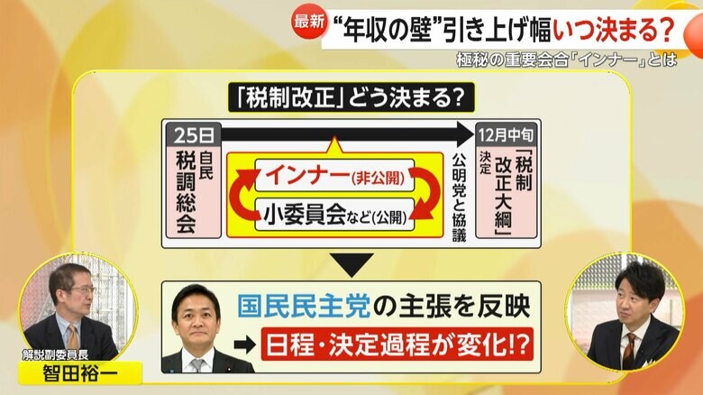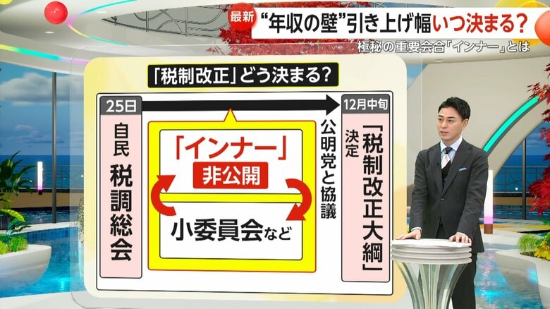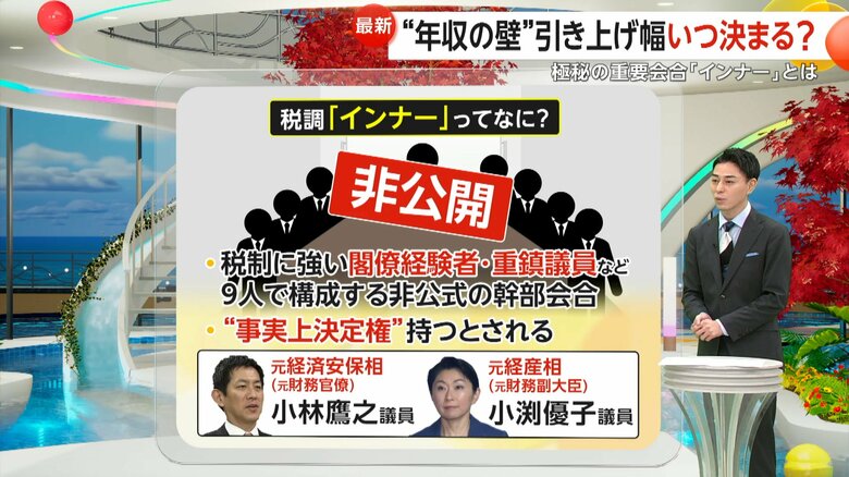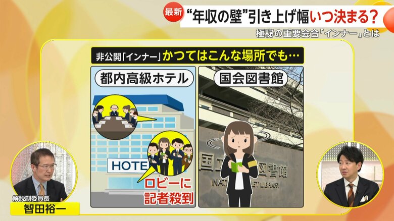 【解説】“103万円の壁”議論本格化…極秘の重要会合「インナ… ギャラリー 1/11 記事に戻る 2/11 記事に戻る 3/11 記事に戻る 4/11 記事に戻る 5/11 記事に戻る インナーと小委員会を繰り返し、税制改正が決まる仕組み 6/11 記事に戻る 税制に強い閣僚経験者、重鎮議員など9人で構成されている非公式の幹部会合 7/11 記事に戻る 元財務官僚の小林鷹之議員や元経産相の小渕優子議員が名を連ねる幹部会合 8/11 記事に戻る 非公開の幹部会合「インナー」がかつて行われていた場所 9/11 記事に戻る 税制改正の決定における、国民民主党の影響 10/11 記事に戻る 11枚目以降の画像を見る 1 2
