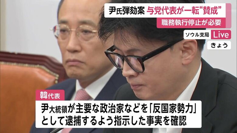 尹大統領の弾劾案に与党『国民の力』韓代表が一転し“賛成” …