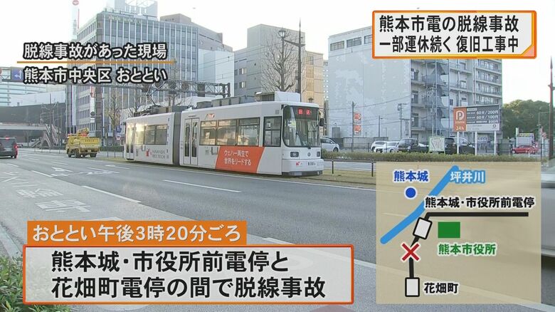大晦日に脱線した熊本市電の復旧工事続く レール幅が基準値よ…