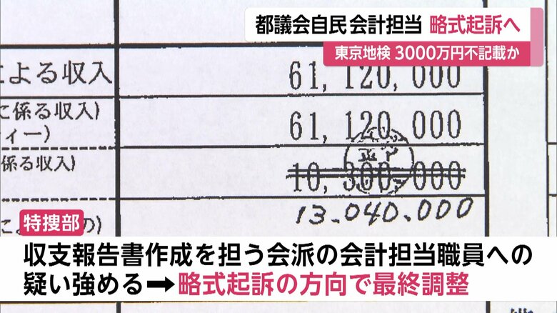 不記載額“3000万円超”か…都議会自民党の会計担当職員を略式…