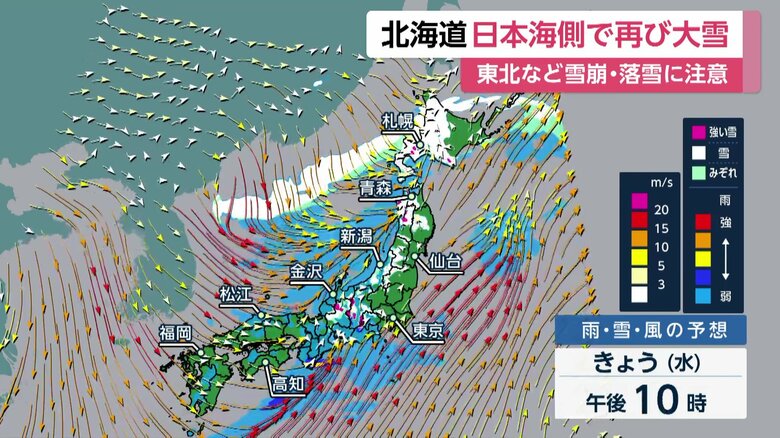 北海道の日本海側では再び大雪に…東北などでも雨予報で雪崩や…