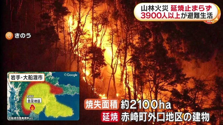 【警戒】焼失面積2000ヘクタール超えるも火の勢い衰えず…岩手…