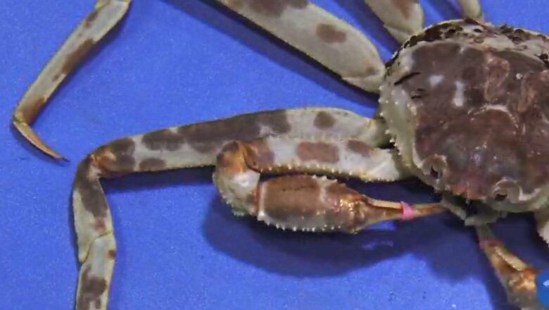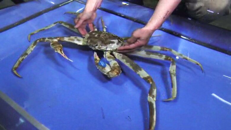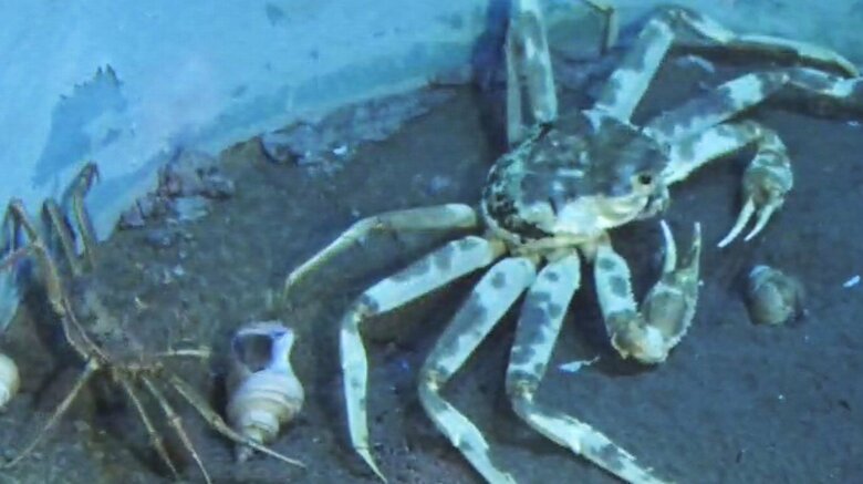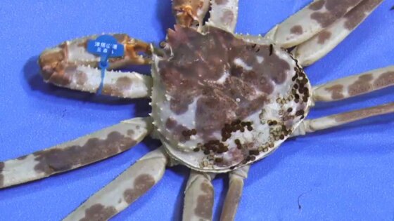 『まだら模様の大きなズワイガニ』生きた大型のものは珍しい …