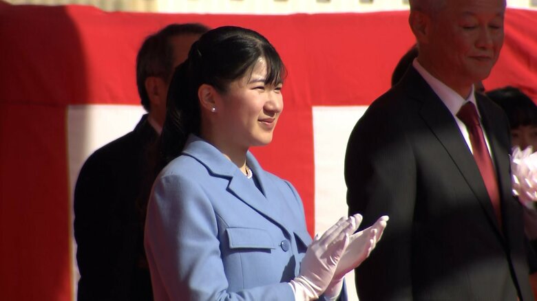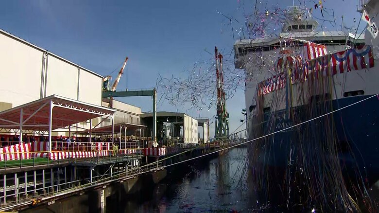 愛子さまが斧でロープを切り笑顔…海洋調査船の進水式に水色の…